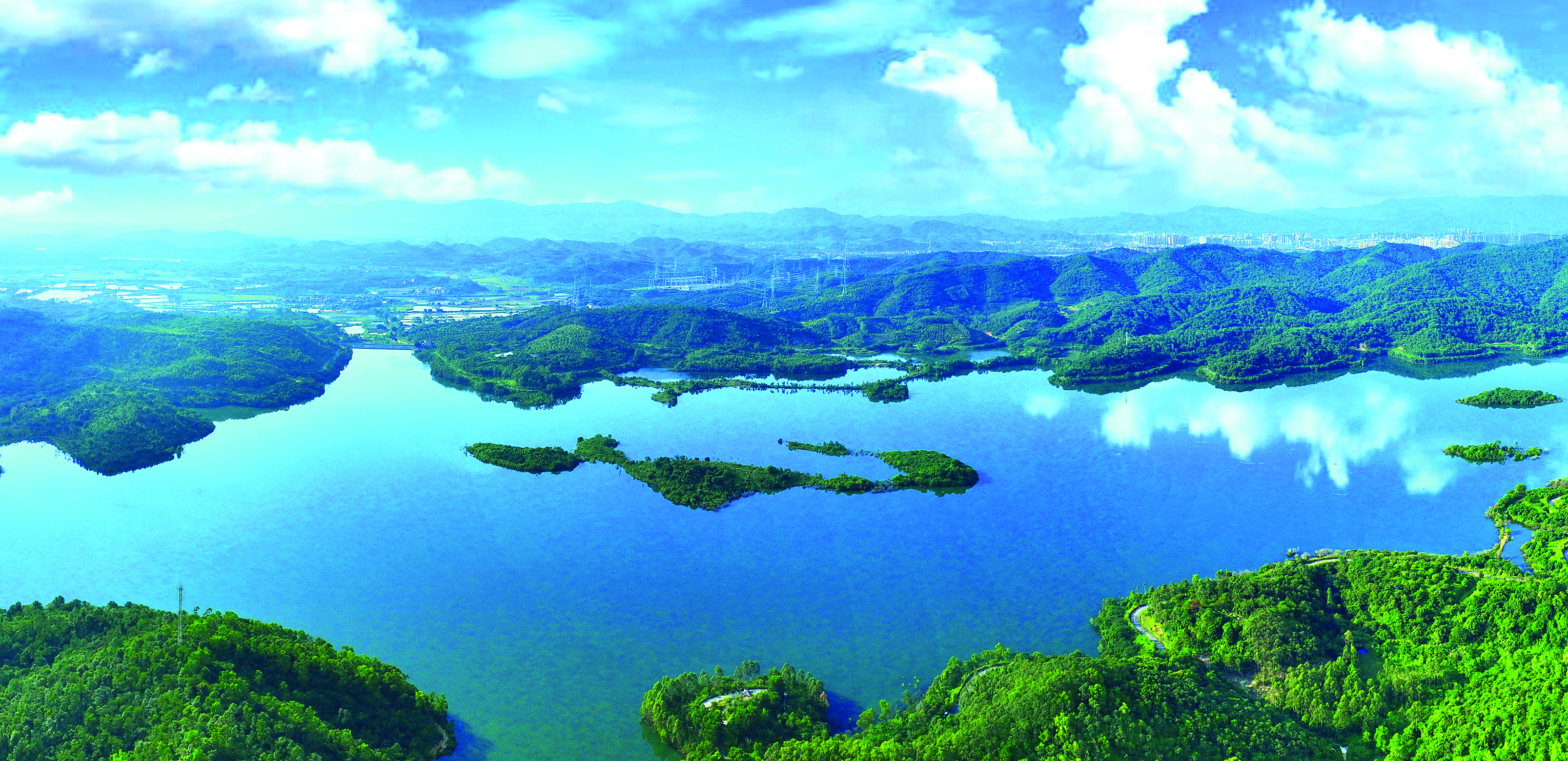 初秋時節(jié),航拍仲愷潼湖觀洞水庫,風(fēng)光旖旎,景美如畫。觀洞水庫屬于一級水源保護(hù)區(qū),這里碧波浩渺、水清岸綠,在藍(lán)天、白云的點綴下,景色蔚為壯觀,構(gòu)成一幅迷人的山水畫卷。