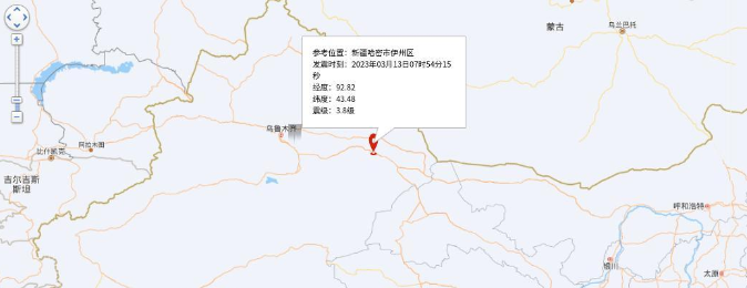 南方網(wǎng)訊 據(jù)中國地震臺網(wǎng)正式測定:3月13日7時54分在新疆哈密市伊州區(qū)(北緯43.48度,東經(jīng)92.82度)發(fā)生3.8級地震,震源深度10千米。