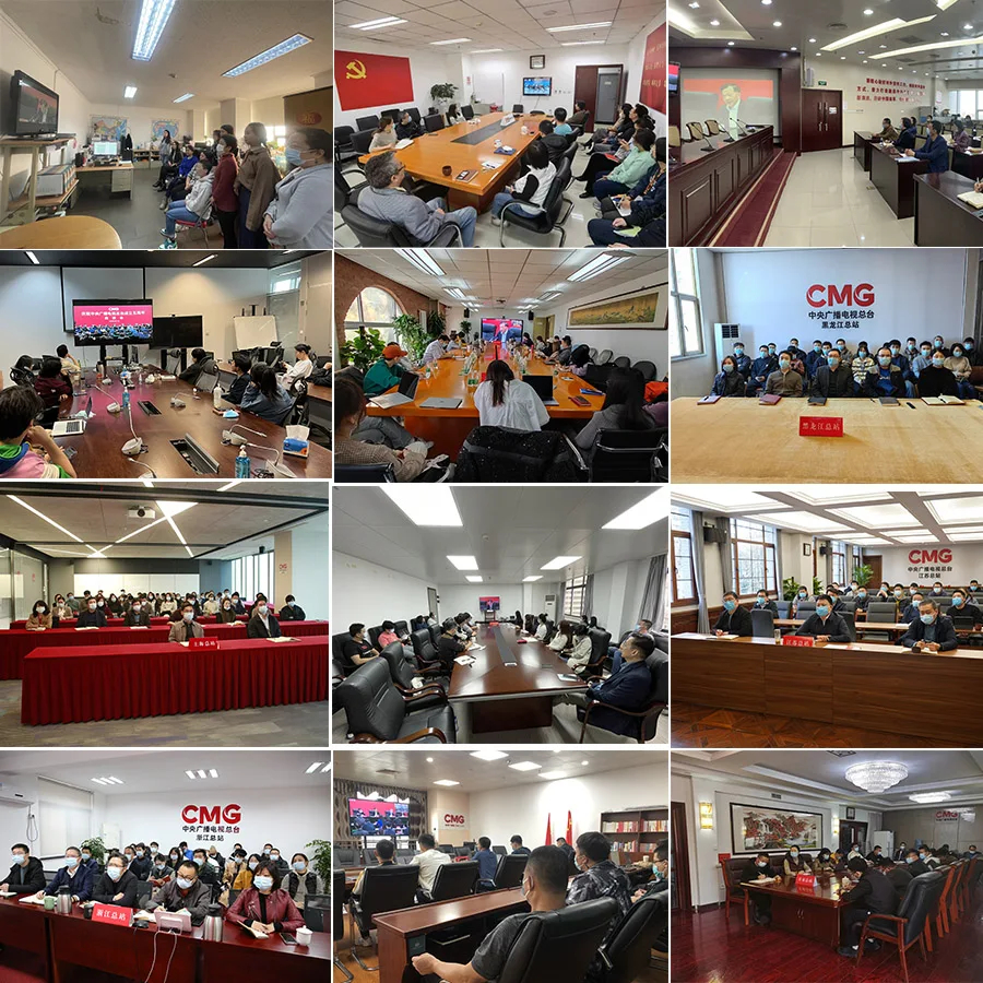 總臺各部門各單位和臺屬公司主要負責(zé)同志,總臺干部員工代表現(xiàn)場參會。總臺四址辦公區(qū)全體人員、國內(nèi)各地方總站人員分別通過閉路電視系統(tǒng)、視頻會議系統(tǒng)同步收看會議實況。