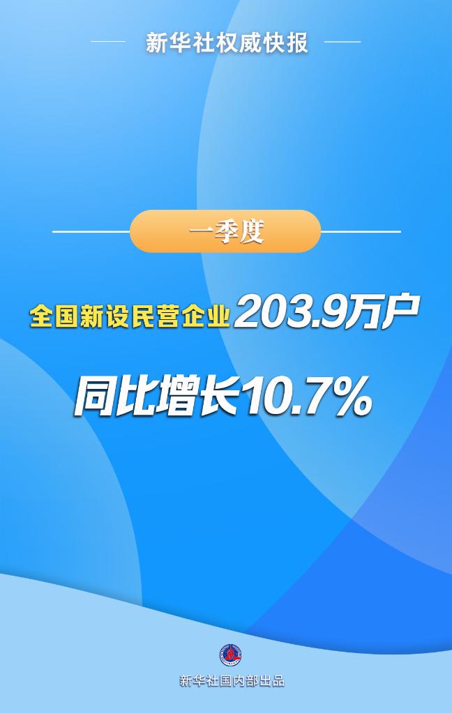 一季度全國(guó)新設(shè)民營(yíng)企業(yè)203.9萬(wàn)戶 同比增長(zhǎng)10.7%