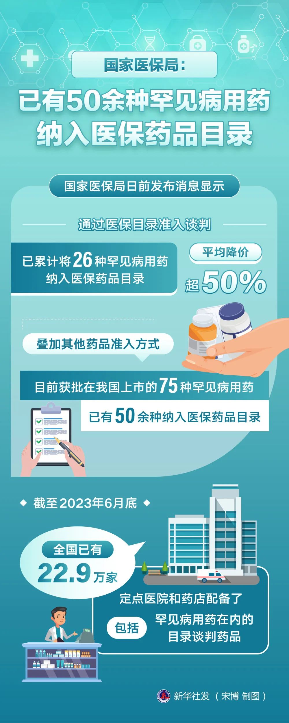 在罕見病用藥供應(yīng)保障方面,國(guó)家醫(yī)保局聯(lián)合國(guó)家衛(wèi)生健康委先后印發(fā)相關(guān)文件,通過(guò)定點(diǎn)醫(yī)療機(jī)構(gòu)和定點(diǎn)零售藥店兩個(gè)渠道,滿足談判藥品供應(yīng)保障、臨床適應(yīng)等方面的合理需求。截至2023年6月底,全國(guó)已有22.9萬(wàn)家定點(diǎn)醫(yī)院和藥店配備了包括罕見病用藥在內(nèi)的目錄談判藥品。