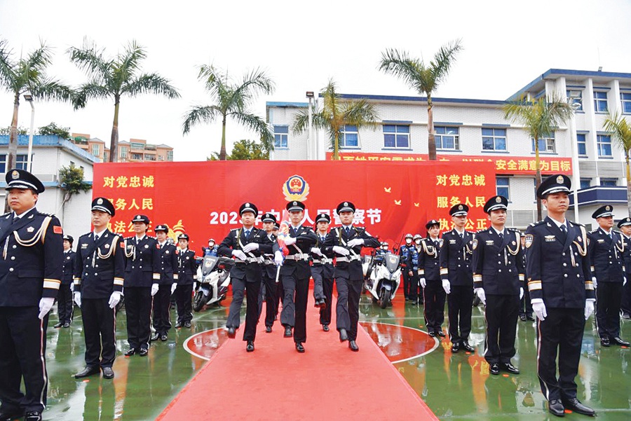 惠州日?qǐng)?bào)訊 (記者楊敬賀 魏怡蘭 通訊員鐘定時(shí))1月10日上午,市公安局仲愷高新區(qū)分局隆重舉行2023年中國(guó)人民警察節(jié)升警旗暨宣誓儀式,熱烈慶祝第三個(gè)中國(guó)人民警察節(jié),全面激勵(lì)仲愷全警以強(qiáng)烈的擔(dān)當(dāng)精神履行好黨和人民賦予的新時(shí)代使命任務(wù)。仲愷高新區(qū)管委會(huì)有關(guān)負(fù)責(zé)人、區(qū)公安分局班子成員、區(qū)公安分局屬各單位主要領(lǐng)導(dǎo)及民輔警代表參加了儀式。