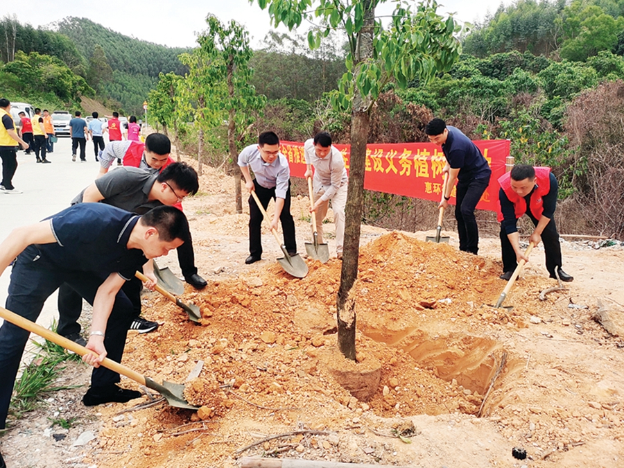 干部群眾揮鏟培土,合力栽下新樹苗。 惠州日報記者邱舒婷 通訊員惠仲宣 攝