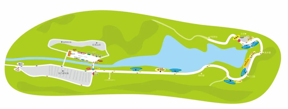 彩跑路線:紅花湖景區(qū)內(nèi)游客中心標(biāo)識處設(shè)起跑點和終點,主壩處設(shè)折返點,全長約6公里;