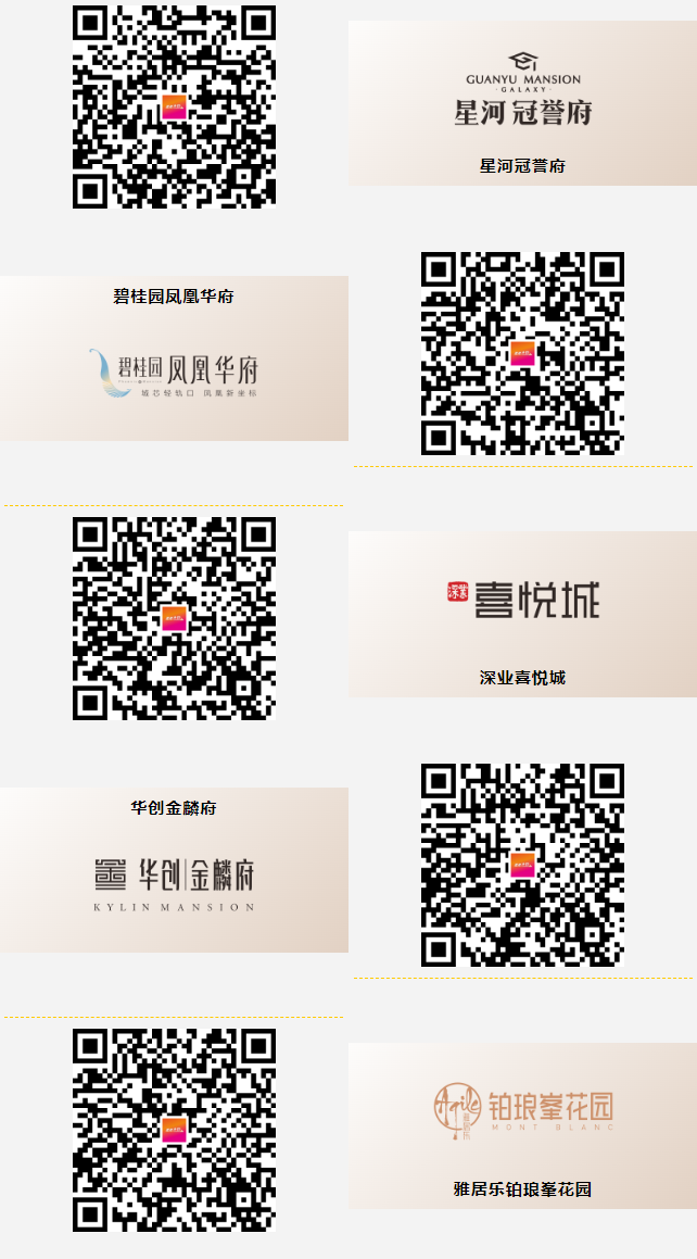 星河冠譽(yù)府、碧桂園鳳凰華府、深業(yè)喜悅城、華創(chuàng)金麟府、雅居樂鉑瑯峯花園