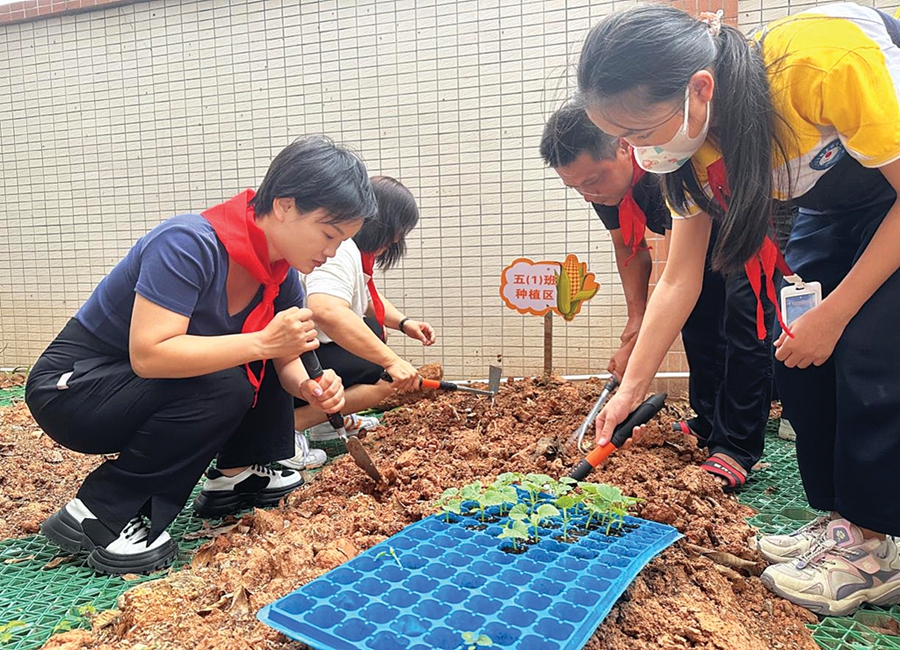 學(xué)生種植農(nóng)作物。惠州日?qǐng)?bào)記者邱舒婷 魏怡蘭 通訊員張妍芳 攝