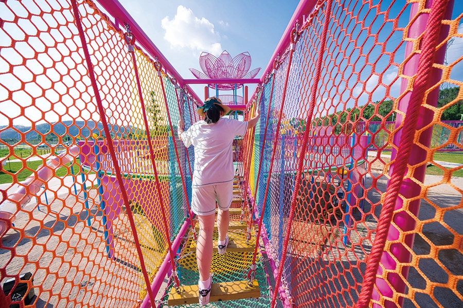 潼心谷位于仲愷高新區(qū)潼湖鎮(zhèn),這里周邊有山林和村莊,空氣十分清新,距離東江邊也不遠(yuǎn)。走進(jìn)園區(qū),一側(cè)就是霍比特人小屋,一個小小的童話世界就在眼前,十分適合小朋友在這里游玩幻想。再往里走走,一座花朵造型的大型無動力游樂設(shè)施呈現(xiàn)在眼前,這里有孩子們最喜歡的繩網(wǎng)、滑梯,寬大的區(qū)域,可以讓孩子們盡情攀爬走動,鍛煉孩子的身體協(xié)調(diào)能力。旁邊還有許多無動力設(shè)施,各個年齡階段的孩子都能在這里快樂地玩耍。此外,園區(qū)還有充氣戲水池和充氣城堡。夏季炎熱,孩子可以在這里盡情地戲水玩耍,或者爬上充氣城堡挑戰(zhàn)8大關(guān)卡,體驗到獨特的快樂。