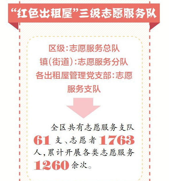 “志愿服務(wù)是我們推進(jìn)出租屋服務(wù)常態(tài)化,引導(dǎo)房東、租客自我管理、自我服務(wù)的重要抓手。”該負(fù)責(zé)人告訴記者,為進(jìn)一步發(fā)揮志愿服務(wù)在黨建引領(lǐng)出租屋治理和服務(wù)民生中的重要作用,今年以來(lái),全區(qū)各出租屋管理黨支部積極動(dòng)員黨員房東、熱心房東、熱心租客、網(wǎng)格員等加入“紅色出租屋”志愿服務(wù)隊(duì),并推動(dòng)外來(lái)工志愿服務(wù)隊(duì)隊(duì)員到所租住的出租屋黨群服務(wù)站報(bào)到。該區(qū)現(xiàn)已建立“紅色出租屋”三級(jí)志愿服務(wù)隊(duì),共發(fā)展志愿者1763人,累計(jì)開(kāi)展各類(lèi)志愿服務(wù)1260余次。