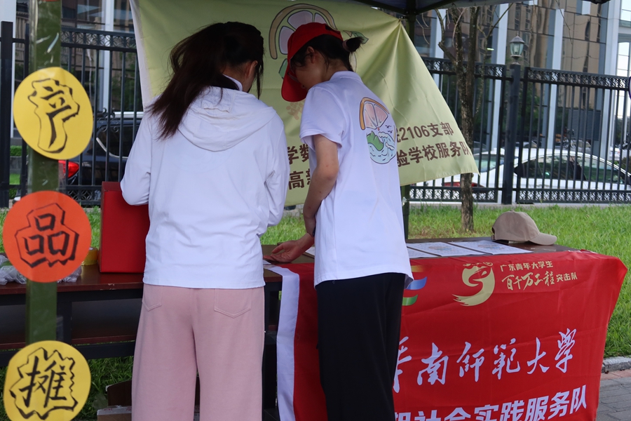 厚植宣傳科普厚土,架起鄉(xiāng)村振興橋梁。7月11日,華南師范大學(xué)數(shù)學(xué)科學(xué)學(xué)院夏日柚約暑期實踐隊來到廣東省惠州市仲愷高新區(qū)惠南實驗學(xué)校開展“鄉(xiāng)村振興宣傳一條街”科普實踐活動,走進(jìn)鄉(xiāng)村基層,為鄉(xiāng)村振興注入青年力量,通過自身實踐提高當(dāng)?shù)鼐用襦l(xiāng)村振興意識,助力鄉(xiāng)村發(fā)展。“鄉(xiāng)村振興宣傳一條街”活動共設(shè)置科普亭、問答屋、助農(nóng)產(chǎn)品攤?cè)齻攤位,通過講解鄉(xiāng)村振興知識、鄉(xiāng)村振興知識問答、贈送優(yōu)質(zhì)農(nóng)產(chǎn)品,為當(dāng)?shù)鼐用駧硪粓鰟e開生面的鄉(xiāng)村振興科普活動。