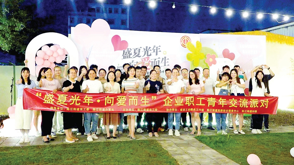 惠州日報訊 (記者劉乙端 魏怡蘭 通訊員王小青 劉素梅)為充分發(fā)揮工會群團組織優(yōu)勢,為陳江街道轄區(qū)內(nèi)單身青年會員搭建交友平臺,8月21日晚,在七夕來臨之際,陳江街道總工會攜手省總工會蹲點工作組、街道黨群綜合服務(wù)中心、街道婦女聯(lián)合會聯(lián)合舉辦了“盛夏光年·向愛而生”聯(lián)誼活動。轄區(qū)內(nèi)基層工會的單身男女青年踴躍報名,惠州創(chuàng)維智顯科技有限公司、德賽電子、惠州海格科技股份有限公司等各大中型企業(yè)的優(yōu)秀青年60余人參加活動。