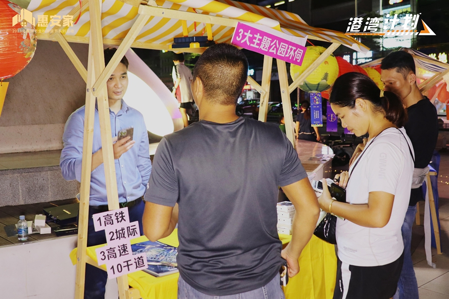 伴隨著月夜星光,氛圍燈亮起,空氣中交織著檸檬茶的香氣與歡快活潑的音樂聲,時(shí)不時(shí)穿插一些游客玩游戲的爽朗笑聲,仲愷的夜在這里升騰起人間溫暖的煙火氣。為歡慶中秋,樓盤項(xiàng)目做足了前期籌備工作,負(fù)責(zé)人精心挑選的中秋特色伴手禮琳瑯滿目,項(xiàng)目資訊單及活動(dòng)手冊(cè)有序擺放一側(cè),推介項(xiàng)目與送出好禮兩不耽誤。游客們?cè)谟螒騾^(qū)和項(xiàng)目展位來(lái)回穿梭,迎著游戲的難度挑戰(zhàn),帶著成功的喜悅兌獎(jiǎng),懷著置業(yè)的夢(mèng)想咨詢,短短幾個(gè)小時(shí),各有各的期待,各有各的收獲。