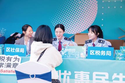 稅務(wù)與社保工作人員共同解答繳費人涉費業(yè)務(wù)。 仲愷區(qū)稅務(wù)局供圖