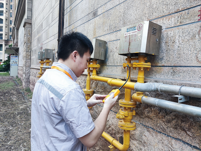 仲愷燃氣工作人員檢查燃氣管道,進行安全排查。