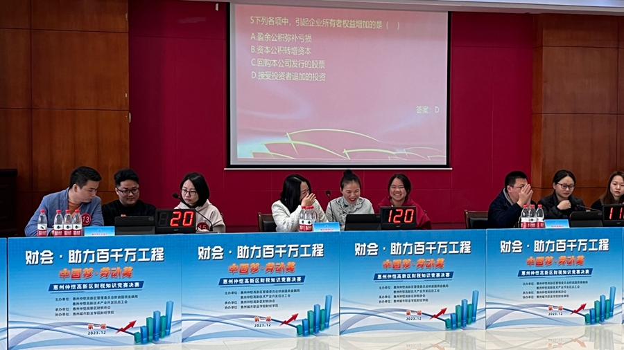 惠州日報(bào)訊 (記者林麗娟 通訊員李世維)2023年12月28日,仲愷高新區(qū)首屆財(cái)稅知識(shí)競賽決賽上演激烈角逐,12支隊(duì)伍36名隊(duì)員你爭我搶,展現(xiàn)深厚的知識(shí)功底。經(jīng)過激烈的比拼,最后,惠州市泰博會(huì)計(jì)服務(wù)有限公司勇奪桂冠,惠州市仁豐會(huì)計(jì)服務(wù)有限公司、中外運(yùn)物流(惠州)有限公司榮獲第二名,惠州市新惠會(huì)計(jì)服務(wù)有限公司、惠州億緯集能有限公司、惠州同協(xié)財(cái)稅服務(wù)有限公司獲得第三名。