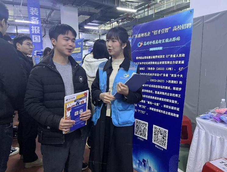 企業(yè)工作人員向高校學(xué)生推介崗位。惠州日?qǐng)?bào)記者林麗娟 通訊員曹年花 攝