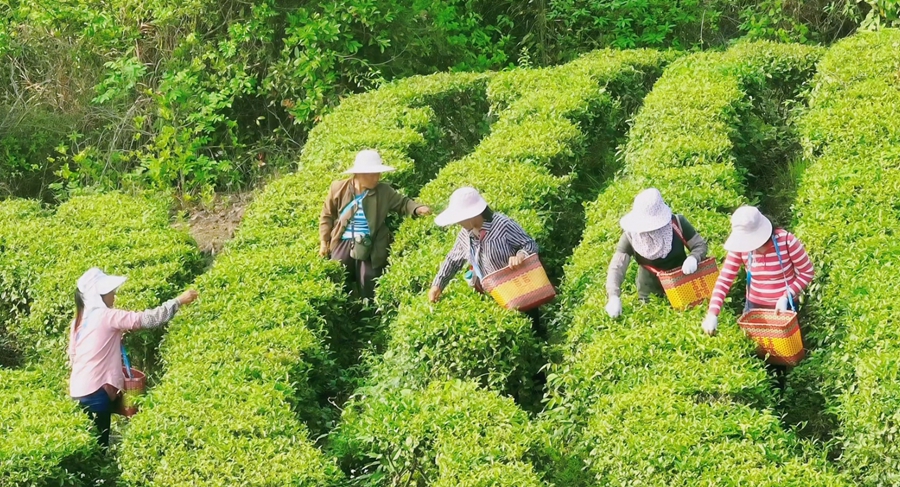 工人采摘企嶺山茶。惠州日報記者邱舒婷 通訊員許皓然 鄒志堅 攝