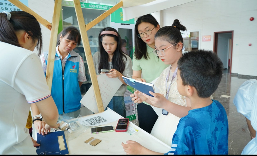 當(dāng)日,活動(dòng)現(xiàn)場(chǎng)設(shè)置了非遺技藝剪影、雕版印刷體驗(yàn)、書(shū)簽DIY、趣味立體圖書(shū)展示、中國(guó)郵政·悅讀郵局等互動(dòng)游戲,家長(zhǎng)們帶著孩子流連在各個(gè)攤位,體驗(yàn)非遺文化,感受閱讀魅力。
