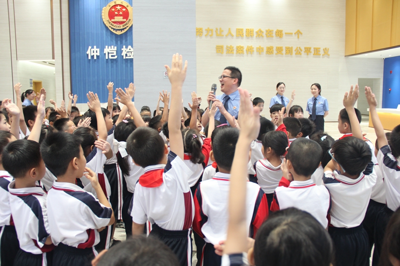 惠州日報訊 (記者劉乙端 通訊員張曼平)近日,仲愷檢察室“檢教同行,共護成長”檢察開放日活動現(xiàn)場迎來了一群“小客人”——仲愷中學附屬小學學生代表,在學校老師的陪同下,帶著對檢察機關工作的好奇,開啟了一場“沉浸式”法治之旅。