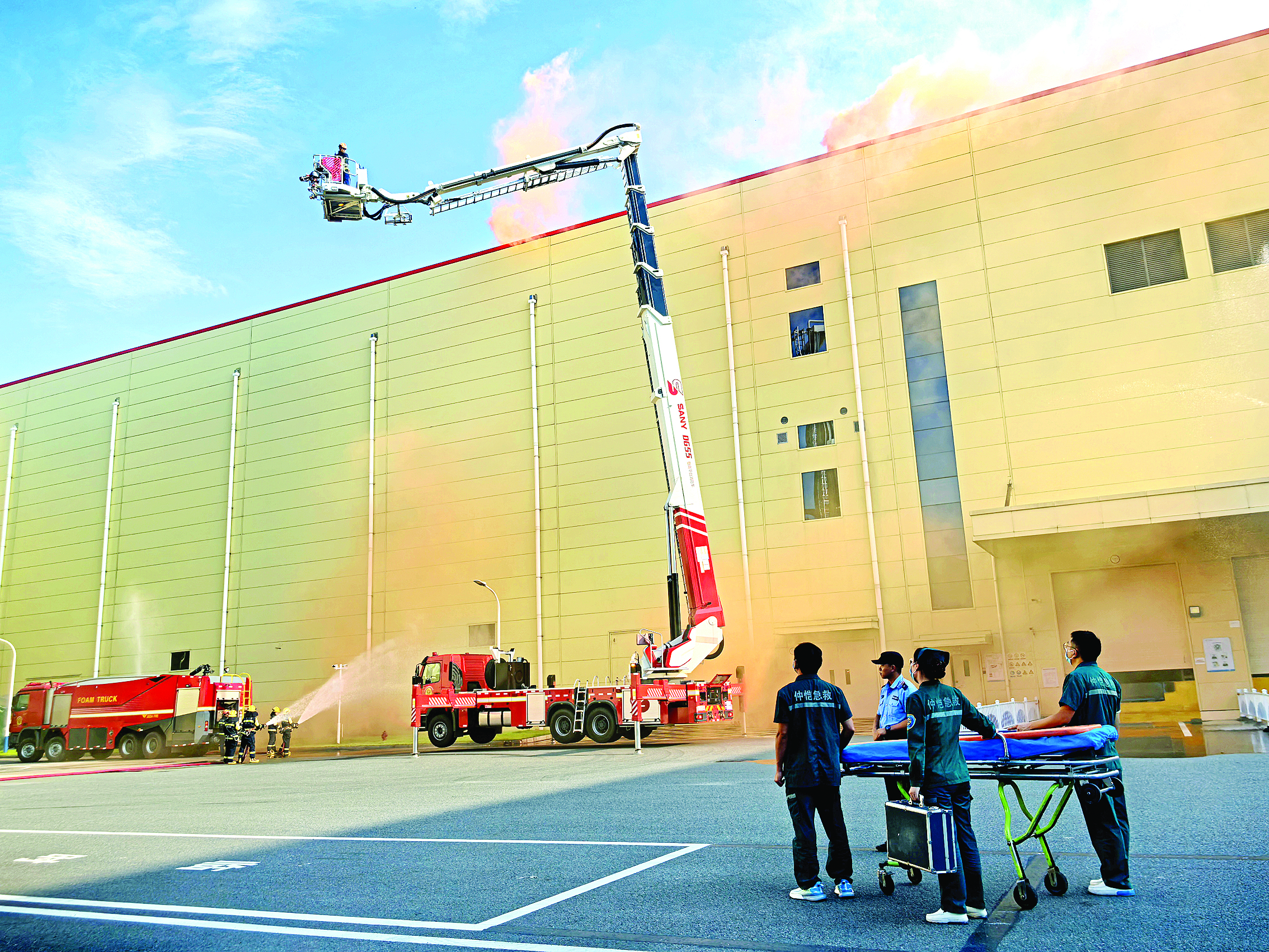 演練模擬2024年8月30日16時,惠州億緯集能有限公司某電池倉發(fā)生起火,火勢迅速蔓延。為達到控制火情效果,保證人民群眾生命財產(chǎn)安全,立即啟動區(qū)級應急響應。仲愷高新區(qū)立即設立現(xiàn)場指揮部,組織指揮應急救援、火災撲救行動,調(diào)派社會力量、屬地增援,開展人員疏散轉移安置工作。