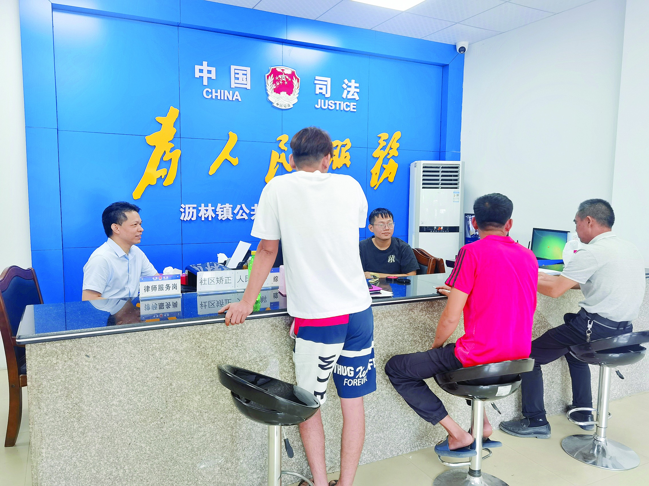 瀝林鎮(zhèn)綜治中心工作人員為群眾調(diào)解糾紛,維護權(quán)益。