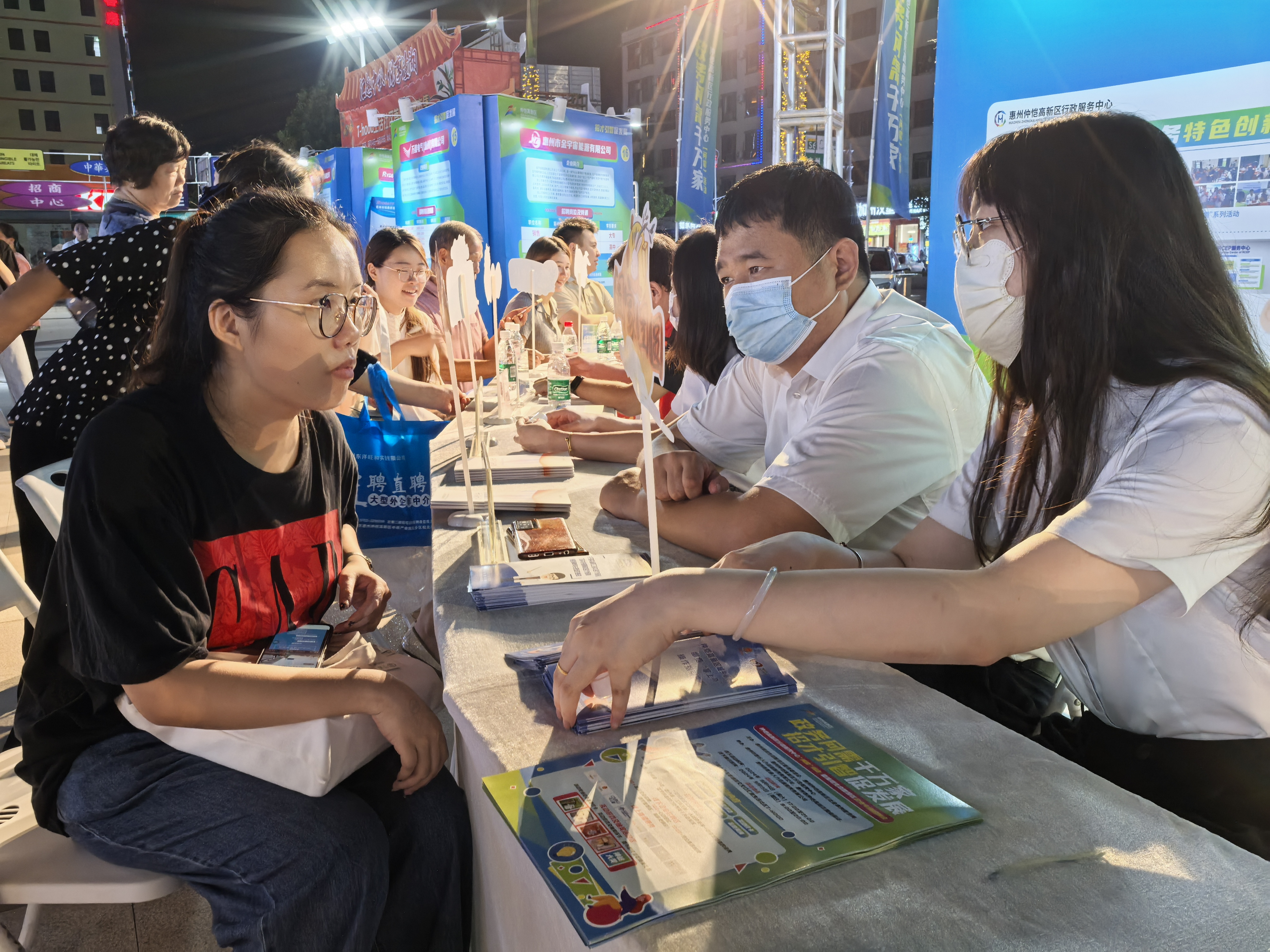 惠州日報訊 (記者鐘瑋 邱舒婷 通訊員王林)夜幕降臨,華燈初上。9月14日傍晚,在仲愷潼湖生態(tài)智慧區(qū)匯趣生活社區(qū)的廣場上,一塊塊展板整齊陳列,近10個業(yè)務部門擺攤答疑解惑,54家企業(yè)提供2000個就業(yè)機會,游戲區(qū)、抽獎區(qū)擺好了滿滿的禮品……“政務問需千萬家 招才引智促發(fā)展”——“政務問需+招聘夜市”主題活動,首次把貼心服務安排到了夜間。附近群眾驚喜地發(fā)現(xiàn),出來散步的同時不僅可以咨詢政務,還能找工作。