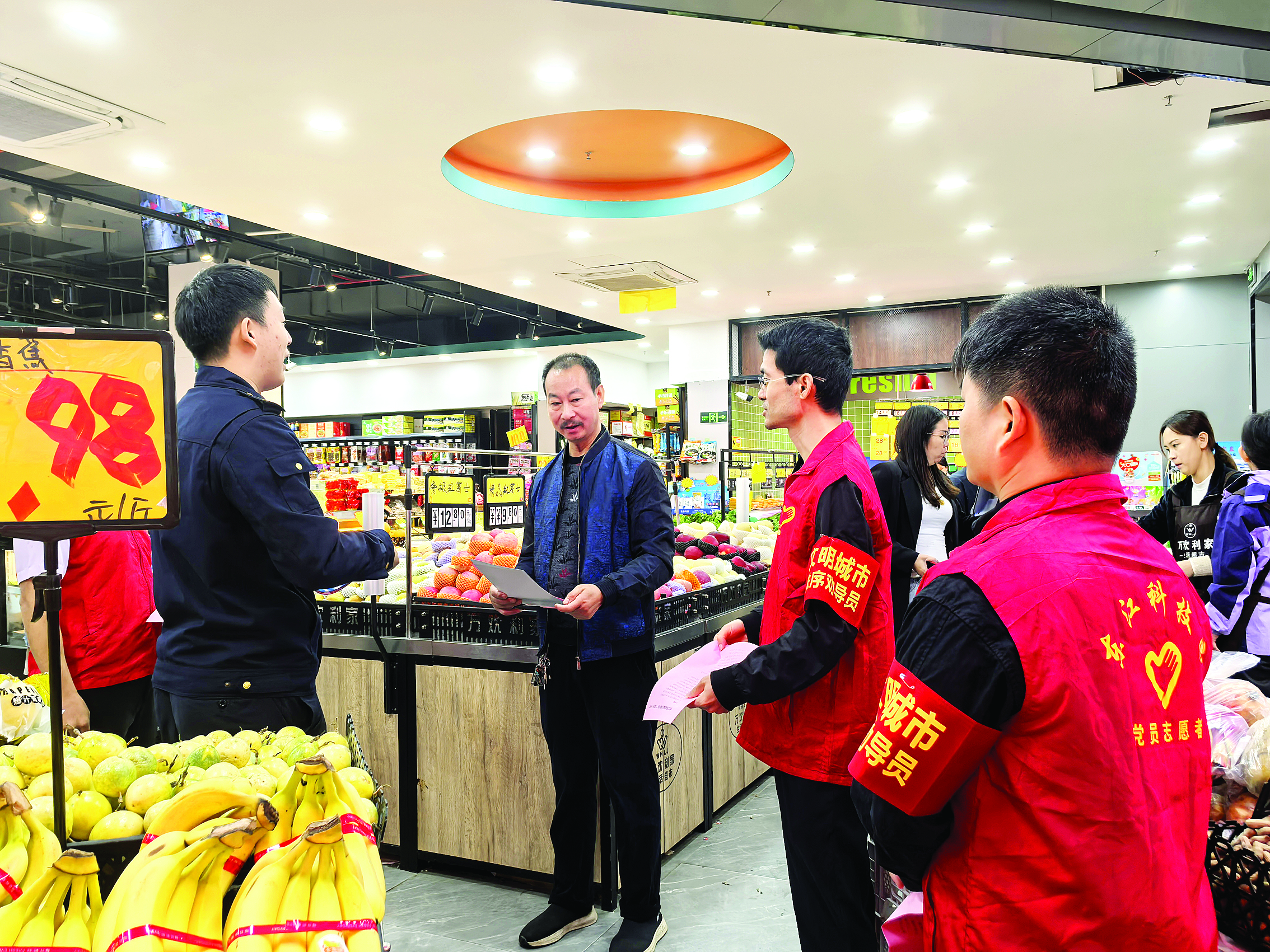 黨員志愿者向群眾宣導(dǎo)“十倡導(dǎo)十不準(zhǔn)”文明要求。