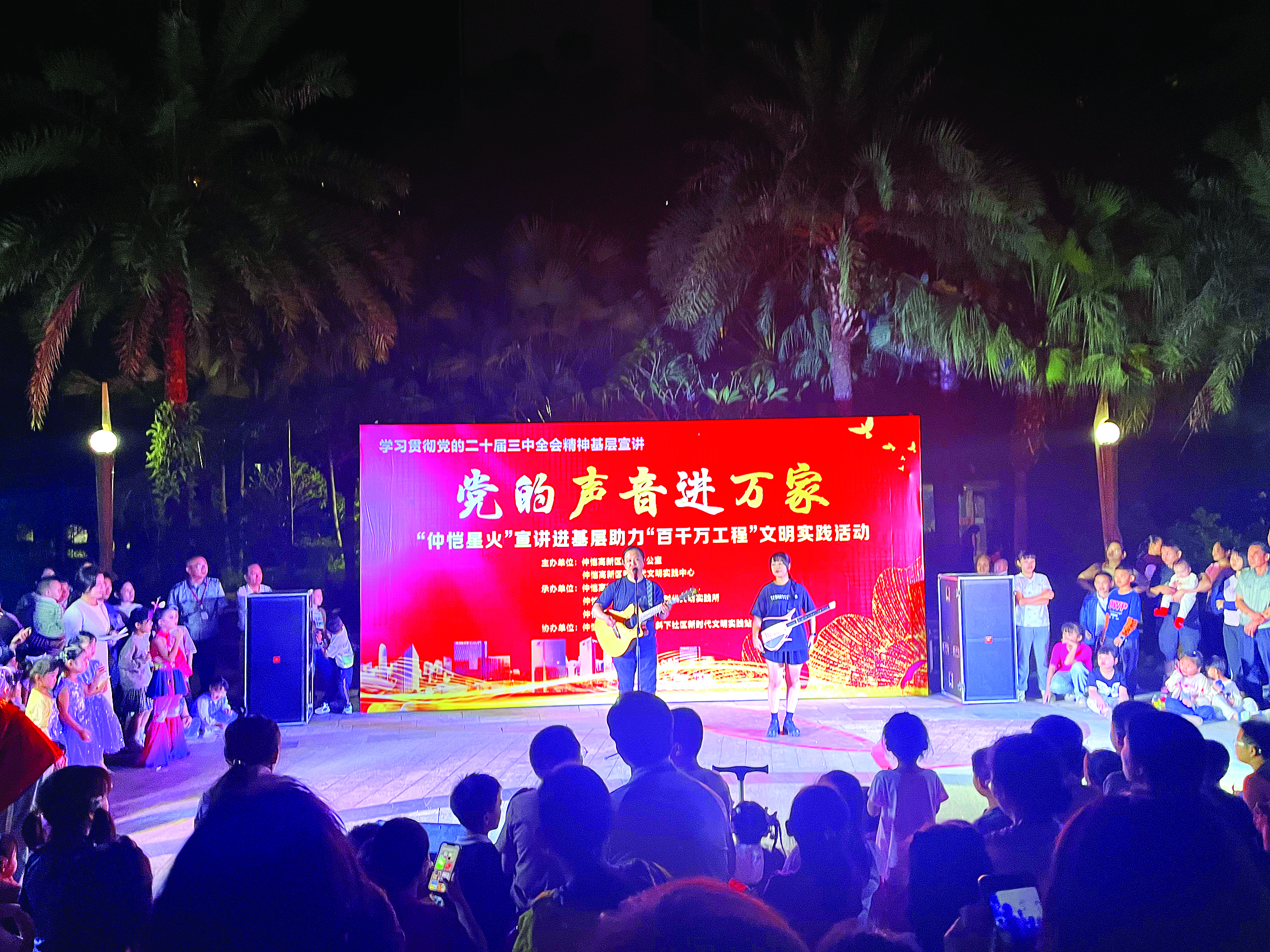 除了邀請(qǐng)專家授課,今年以來,仲愷高新區(qū)持續(xù)提升“仲愷星火”理論宣講計(jì)劃的覆蓋面和影響力,通過舉辦“仲愷星火”理論宣講比武活動(dòng),建立講師庫(kù)及特色宣講課程庫(kù),組建10支“仲愷星火”特色理論宣講隊(duì),打造16家“星火講堂”,積極探索“宣講+”模式,用小切口展現(xiàn)“大主題”、用“小故事”講述“大道理”。如“仲愷星火”宣講員蘇雨楠以《走進(jìn)新時(shí)代》《大中國(guó)》為主題,通過音樂宣講的方式,巧妙地將愛國(guó)歌曲與黨的歷史相結(jié)合,讓群眾在輕松愉快的氛圍中受到啟發(fā);情景劇《仲愷風(fēng)尚有傳承》和小品《此處安心是吾鄉(xiāng)》等節(jié)目精彩紛呈。基層理論宣講是打通黨的創(chuàng)新理論傳播“最后一公里”的重要渠道。宣講隊(duì)以“講、寫、唱、演、展”等群眾喜聞樂見的形式,深入企業(yè)、村(社區(qū))、學(xué)校等基層舉辦“黨的聲音進(jìn)萬家”“聽黨話、感黨恩、跟黨走”“強(qiáng)國(guó)復(fù)興有我”等各類主題宣講活動(dòng)300余場(chǎng),參與群眾3萬余人次,讓理論宣講更有“煙火氣”、更“接地氣”。