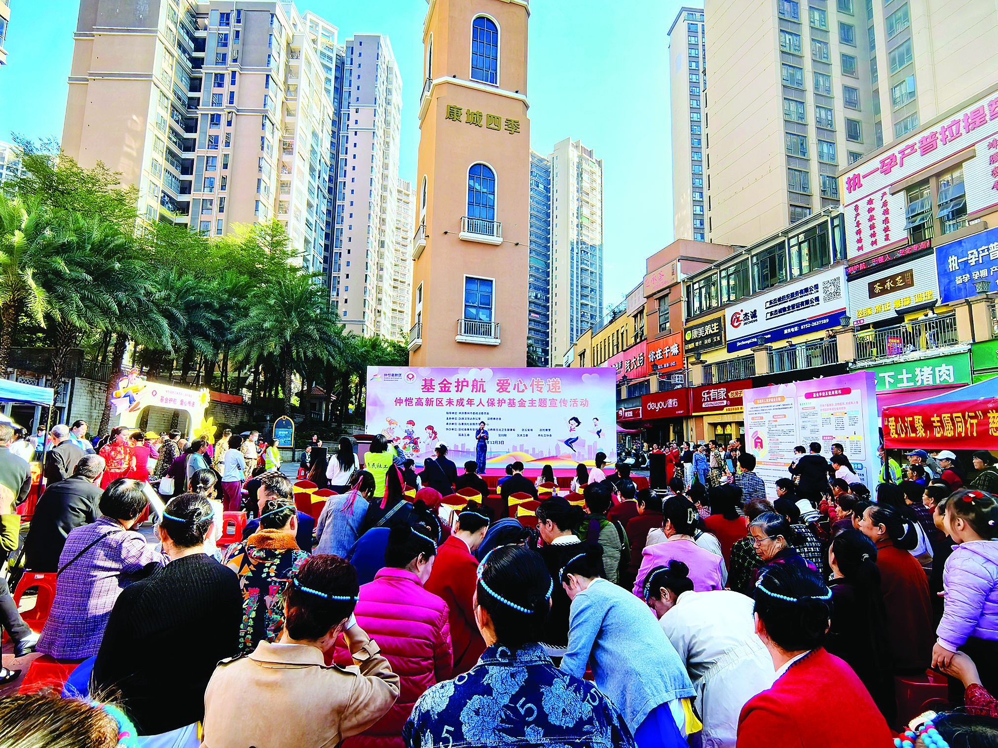 活動(dòng)在激情澎湃的舞蹈中拉開(kāi)序幕。現(xiàn)場(chǎng)不僅有精彩的文藝表演,還設(shè)置了趣味游戲互動(dòng)區(qū)、知識(shí)答疑區(qū)和便民服務(wù)區(qū)等,向群眾宣傳仲愷高新區(qū)慈善總會(huì)未成年人保護(hù)基金,吸引了約300名市民參加。