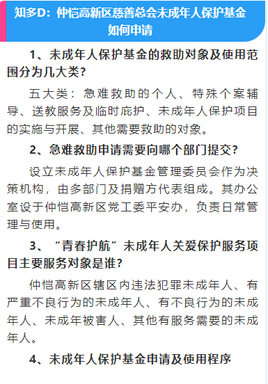 據(jù)介紹,未成年人保護(hù)基金由仲愷高新區(qū)黨工委平安仲愷建設(shè)領(lǐng)導(dǎo)小組辦公室統(tǒng)籌,在該區(qū)慈善總會(huì)設(shè)立,是該區(qū)落實(shí)國(guó)家法律要求和工作部署的重要舉措。重點(diǎn)用于未成年人臨時(shí)生活救助、醫(yī)療救助、特殊個(gè)案輔導(dǎo)服務(wù)、送教服務(wù)及臨時(shí)庇護(hù)、未成年人保護(hù)項(xiàng)目的實(shí)施和開(kāi)展,以及其他需要救助的未成年服務(wù)對(duì)象。其中,“青春護(hù)航”未成年人關(guān)愛(ài)保護(hù)服務(wù)項(xiàng)目是未成年人保護(hù)基金資助的對(duì)象之一。該項(xiàng)目結(jié)合仲愷高新區(qū)的實(shí)際情況,計(jì)劃通過(guò)提供個(gè)案服務(wù)以及開(kāi)展外展宣傳活動(dòng)來(lái)實(shí)施服務(wù)。