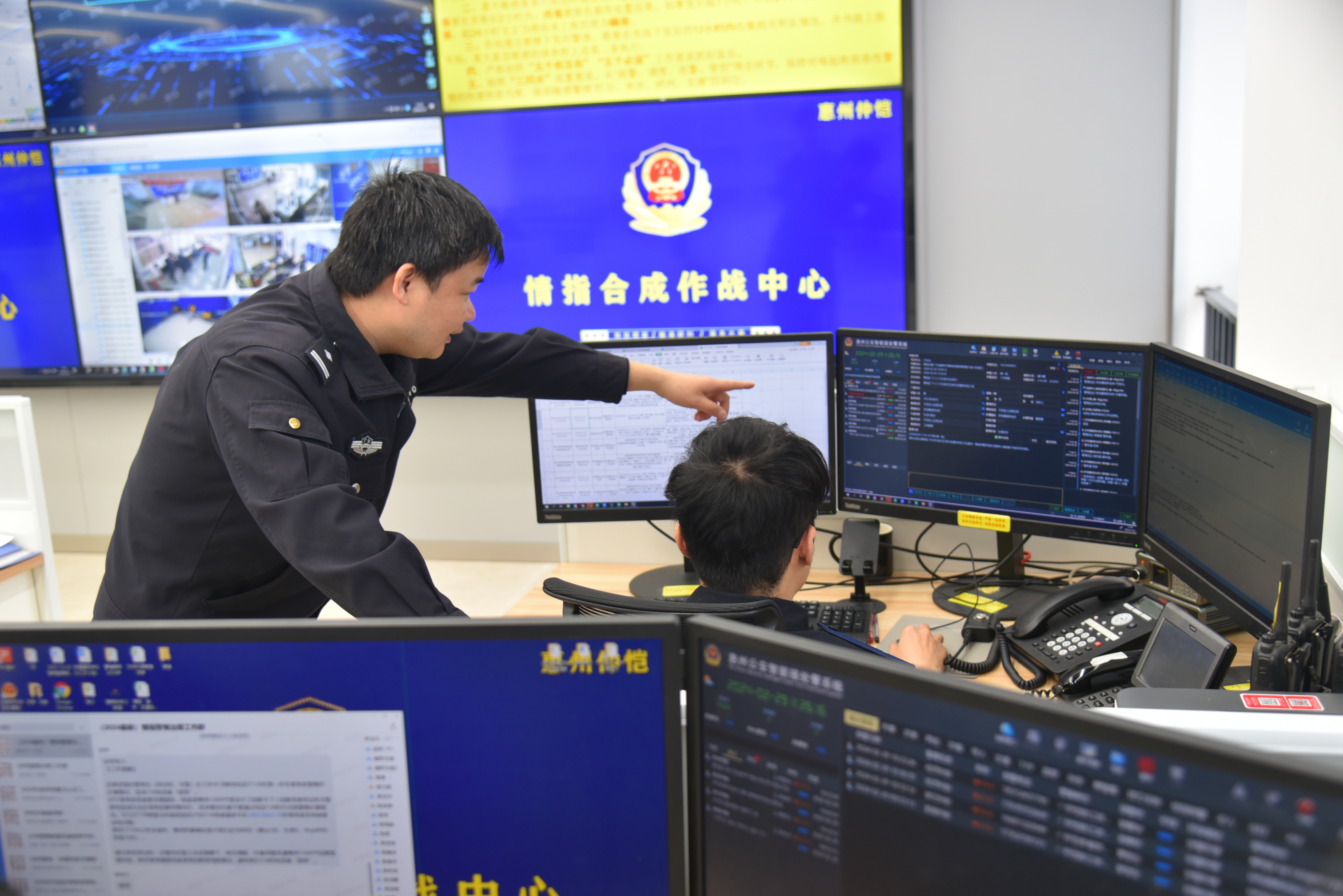 民警在仲愷公安分局指揮中心分析警情數(shù)據(jù)。