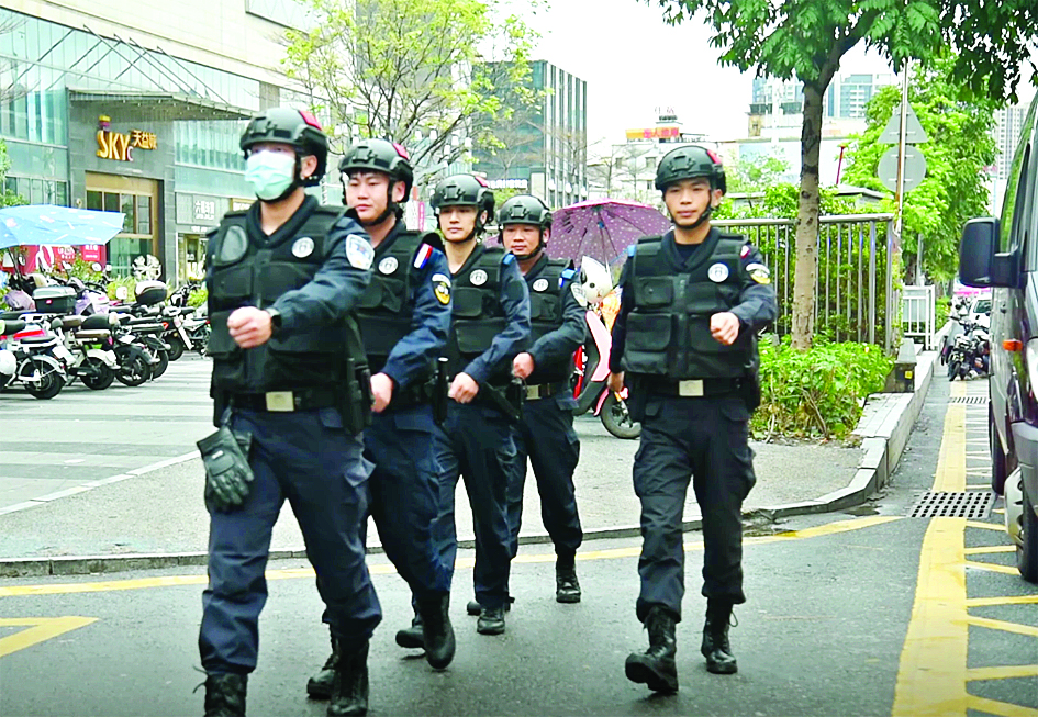 特警巡邏街面。