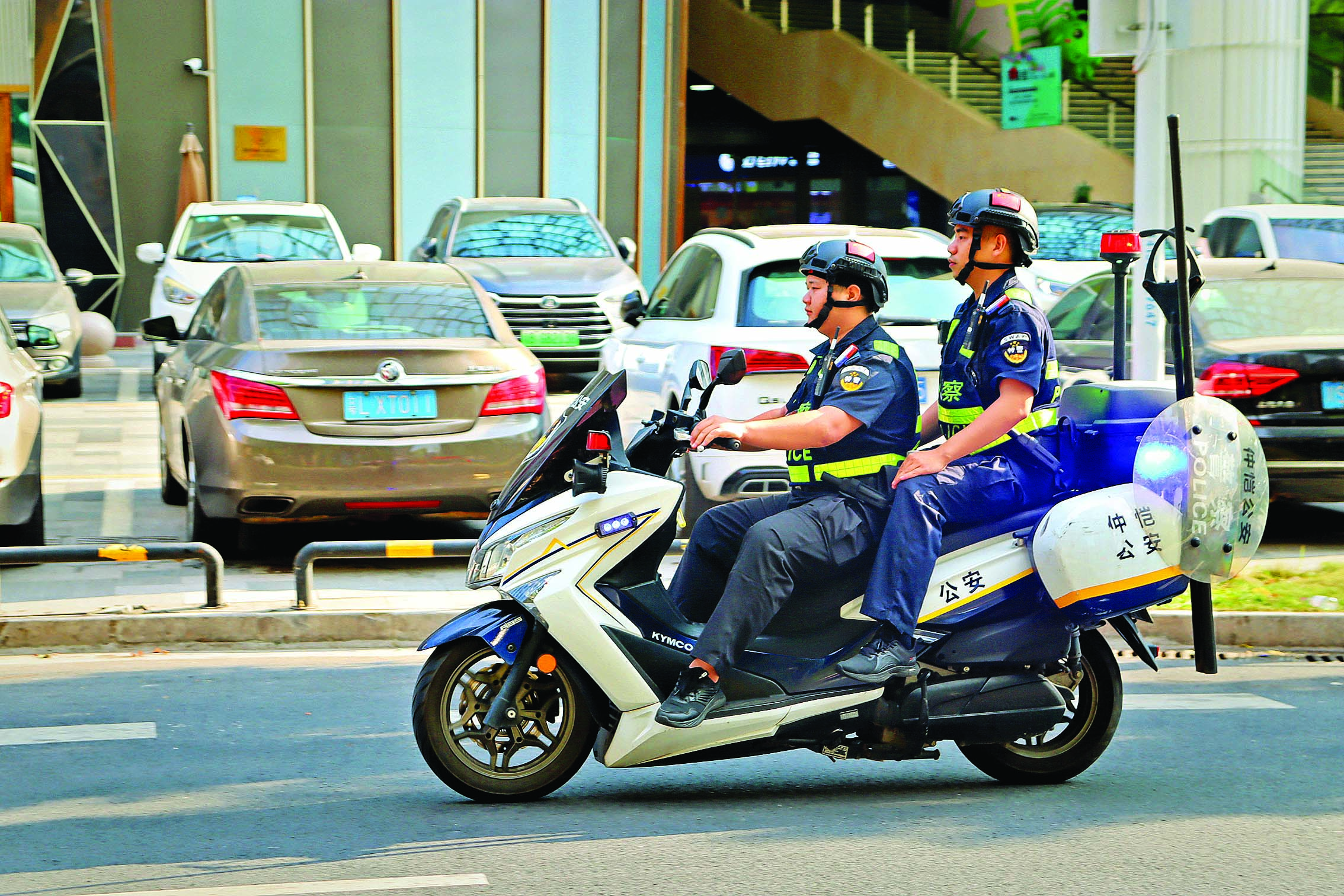巡警在街面巡邏。