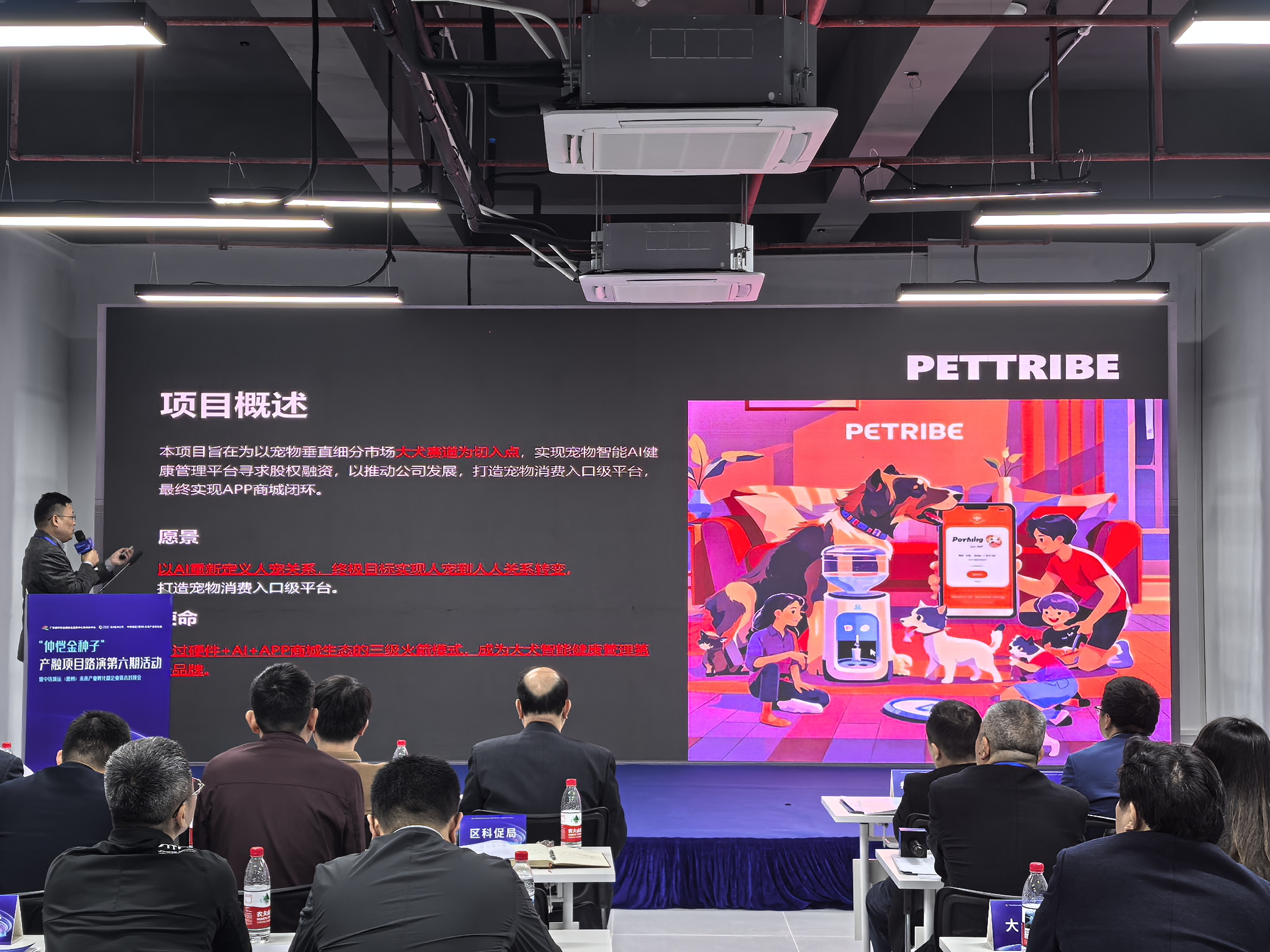 項目路演環(huán)節(jié),7家優(yōu)秀企業(yè)輪番上陣,分別展示獨具特色的創(chuàng)新項目。從國大模型智算項目,到氫燃料電池增濕器項目,再到無組織排放污染空氣治理裝備項目、靜美適口腔阻鼾項目、360°全棧式外觀瑕疵檢測技術(shù)項目、先進相變蓄冷材料和混動智慧制冷儲能技術(shù)項目以及寵物智能+AI項目,覆蓋大數(shù)據(jù)、新能源、醫(yī)療科技、人工智能等多個前沿領(lǐng)域。路演現(xiàn)場,投資人踴躍提問,與企業(yè)代表深入交流,氣氛熱烈。