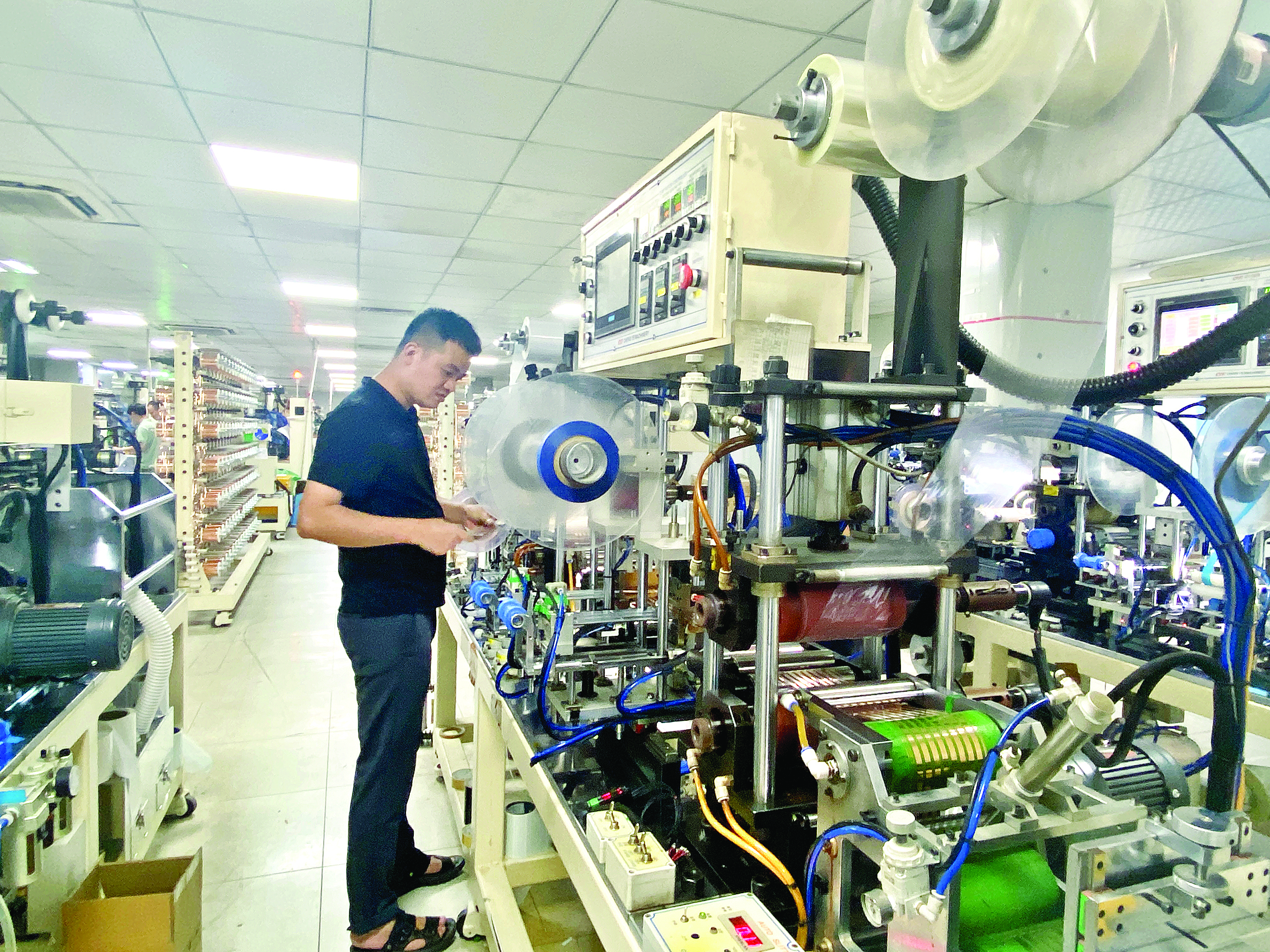 宇同公司員工正在操作機(jī)器。 惠州日?qǐng)?bào)記者鐘瑋 攝
