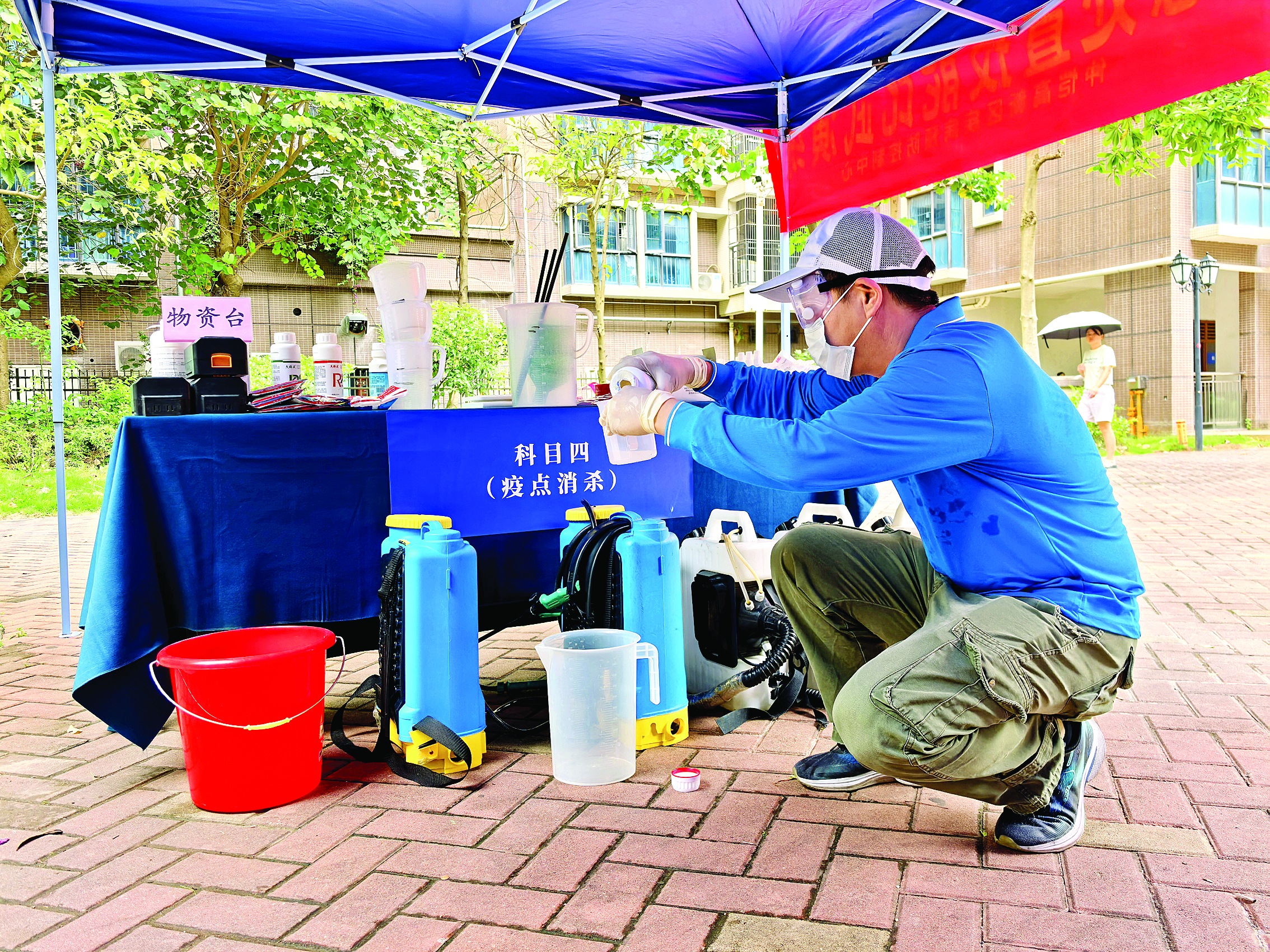 參賽人員現(xiàn)場(chǎng)開展應(yīng)急消殺。惠州日?qǐng)?bào)記者鐘瑋 攝