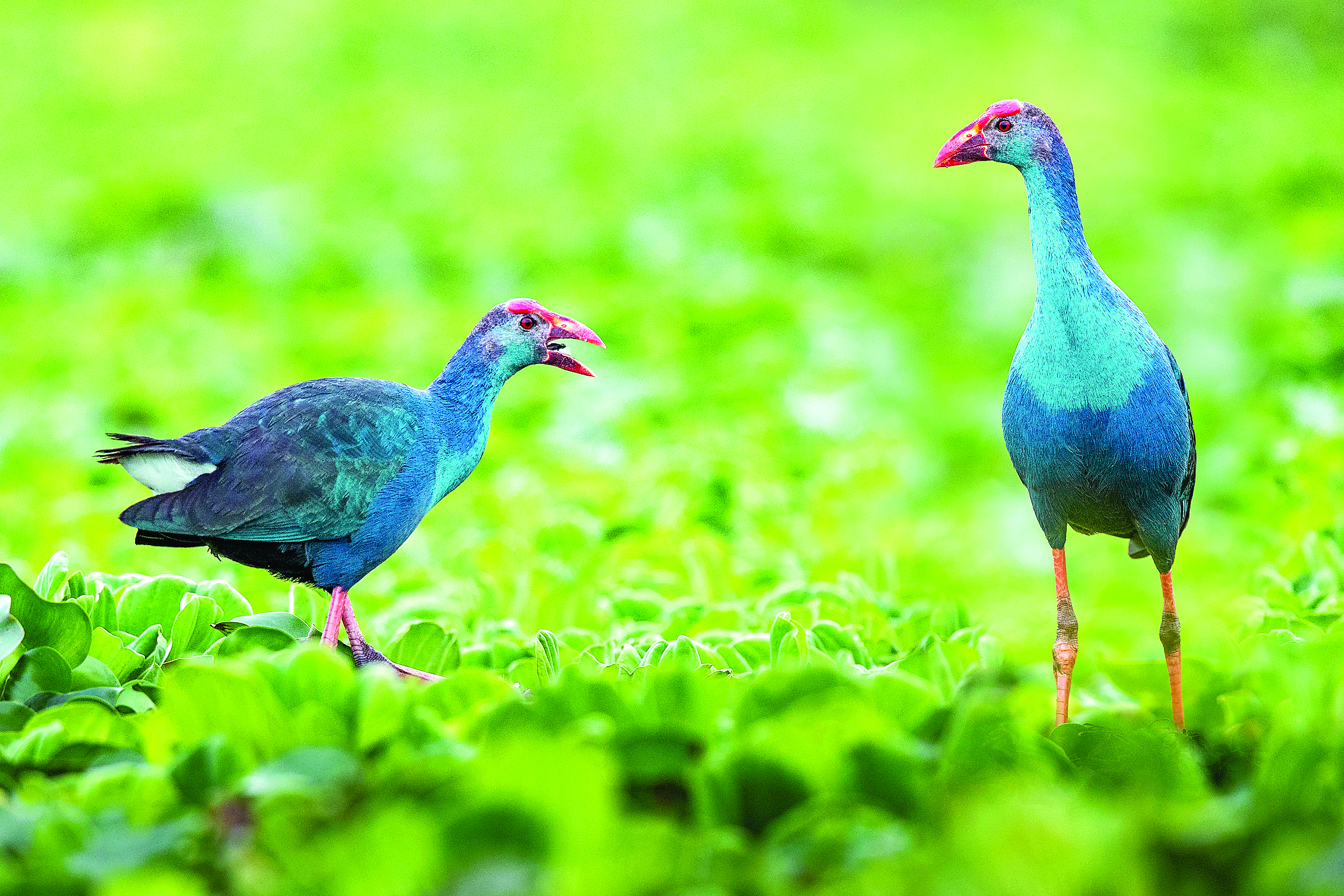 紫水雞現(xiàn)身潼湖濕地。 通訊員徐斌 攝