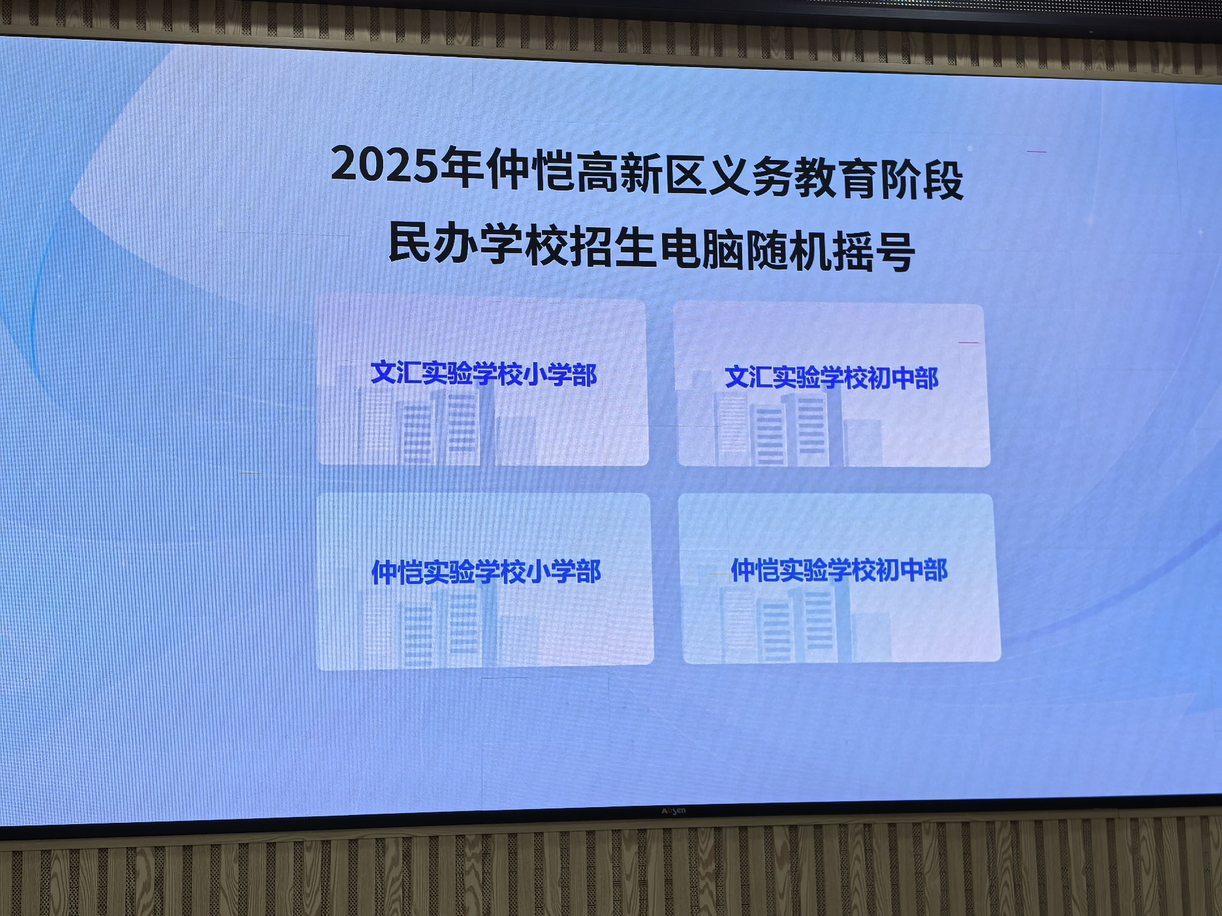 當(dāng)天上午9時(shí)30分,搖號錄取工作正式開始。現(xiàn)場按照仲愷實(shí)驗(yàn)學(xué)校小學(xué)部、仲愷實(shí)驗(yàn)學(xué)校初中部、文匯實(shí)驗(yàn)學(xué)校小學(xué)部、文匯實(shí)驗(yàn)學(xué)校初中部的順序進(jìn)行搖號。在工作人員的指引下,監(jiān)督代表們依次按下“開始抽取”的按鈕,被搖中的學(xué)生姓名和代碼隨即顯示在大屏幕上。隨后,工作人員打印出錄取結(jié)果,交由在場公證人員及監(jiān)督代表們審核簽字。此次搖號共有1649人參加,共搖出655個(gè)名額。