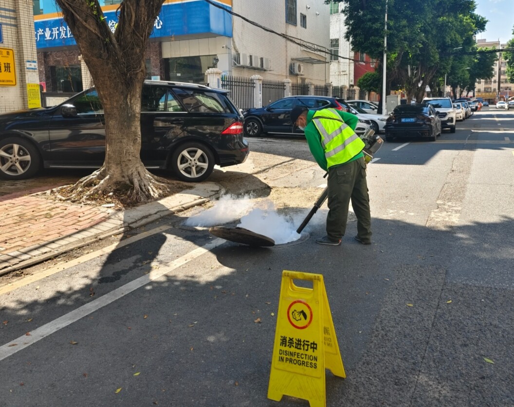 環(huán)衛(wèi)工人重點(diǎn)清理溝渠、垃圾站等衛(wèi)生死角,確保排水暢通;專(zhuān)業(yè)消殺人員也背著專(zhuān)業(yè)設(shè)備,對(duì)綠化帶、下水道等蚊蟲(chóng)孳生區(qū)域進(jìn)行精準(zhǔn)噴殺,形成“清理+消殺”雙重防控網(wǎng)絡(luò)。