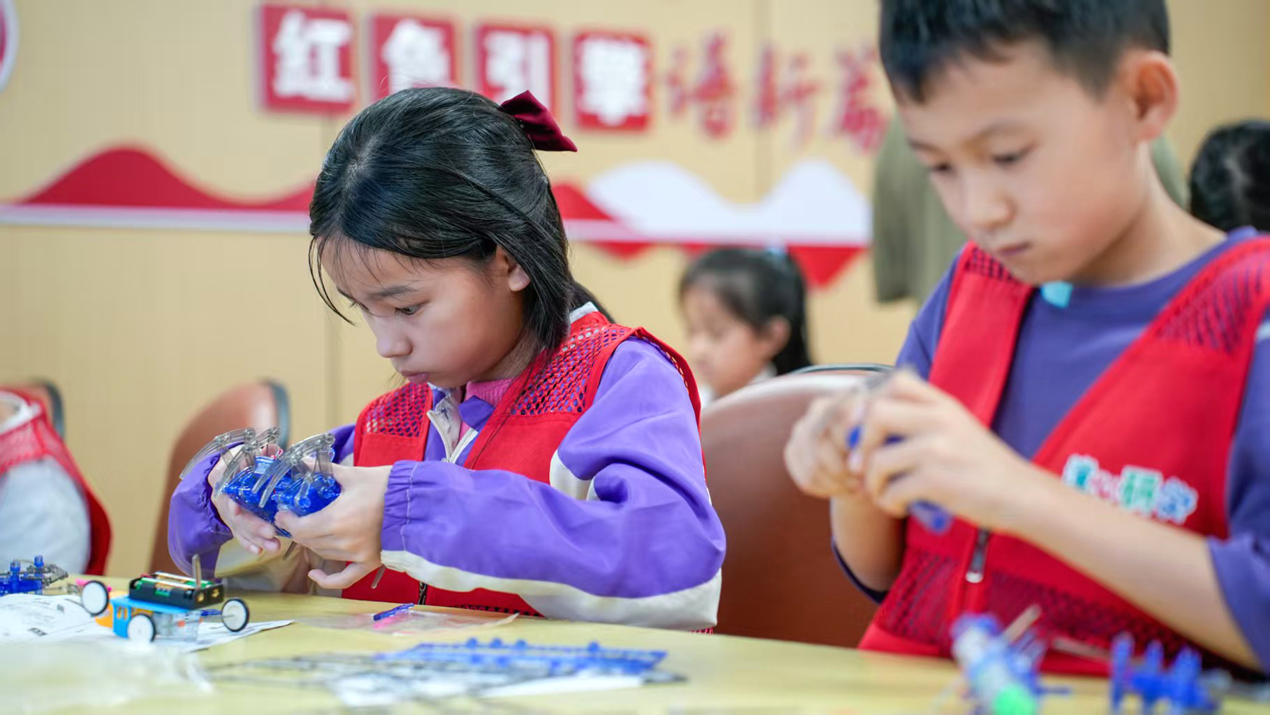 動手環(huán)節(jié)成為了孩子們的探索樂園。他們親手拼搭爬蟲機器人和仿生蜘蛛機器人,在一次次嘗試與調(diào)整中,感受著征服難題的滿足感,動手能力和創(chuàng)新思維悄然提升。