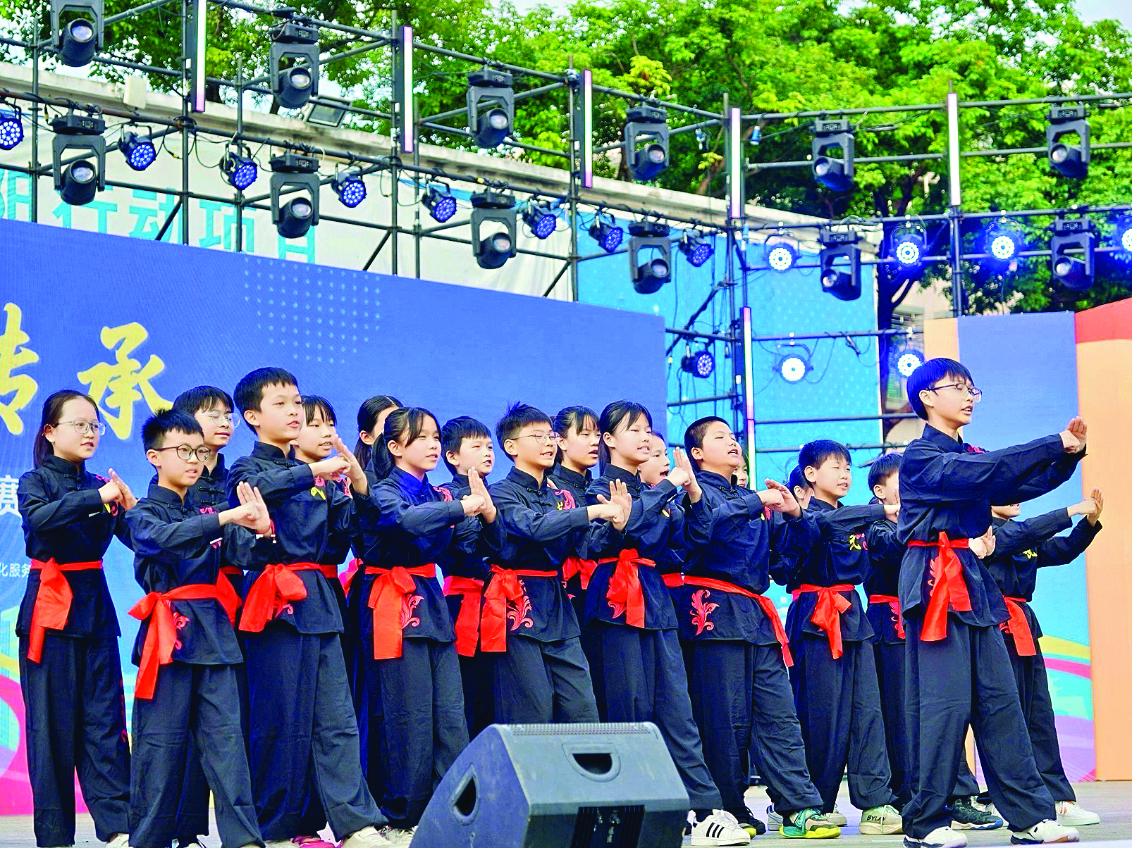 非遺傳承,根基在青少年。仲愷5所學校的少年們上臺比拼莫家拳,一招一式剛勁有力。近年來,仲愷高新區(qū)持續(xù)深耕“非遺進校園”,讓文化傳承有了堅實的人才儲備。