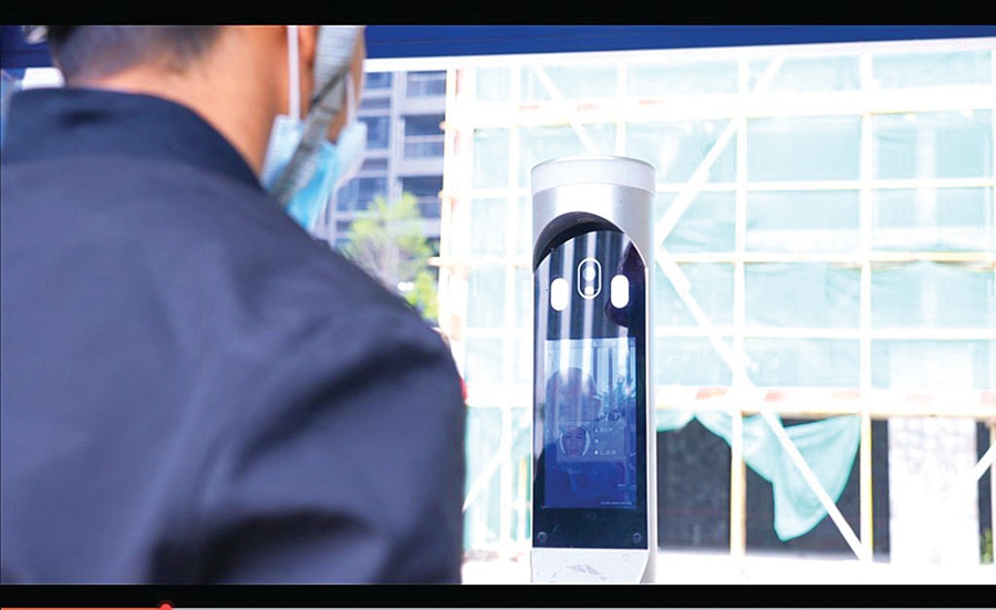 工人刷臉實(shí)名制打卡上班,工時(shí)等數(shù)據(jù)會(huì)傳輸?shù)健胺狼沸狡脚_(tái)”。