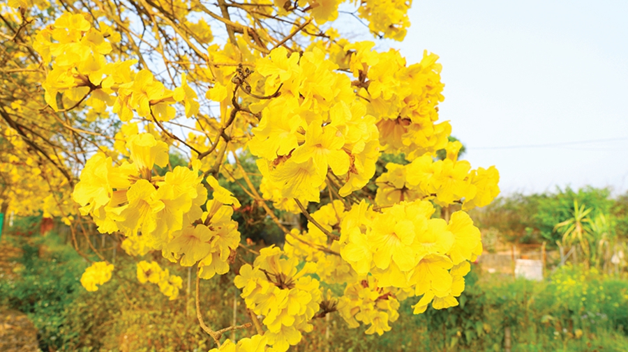 村道兩旁一路的黃花風(fēng)鈴木。