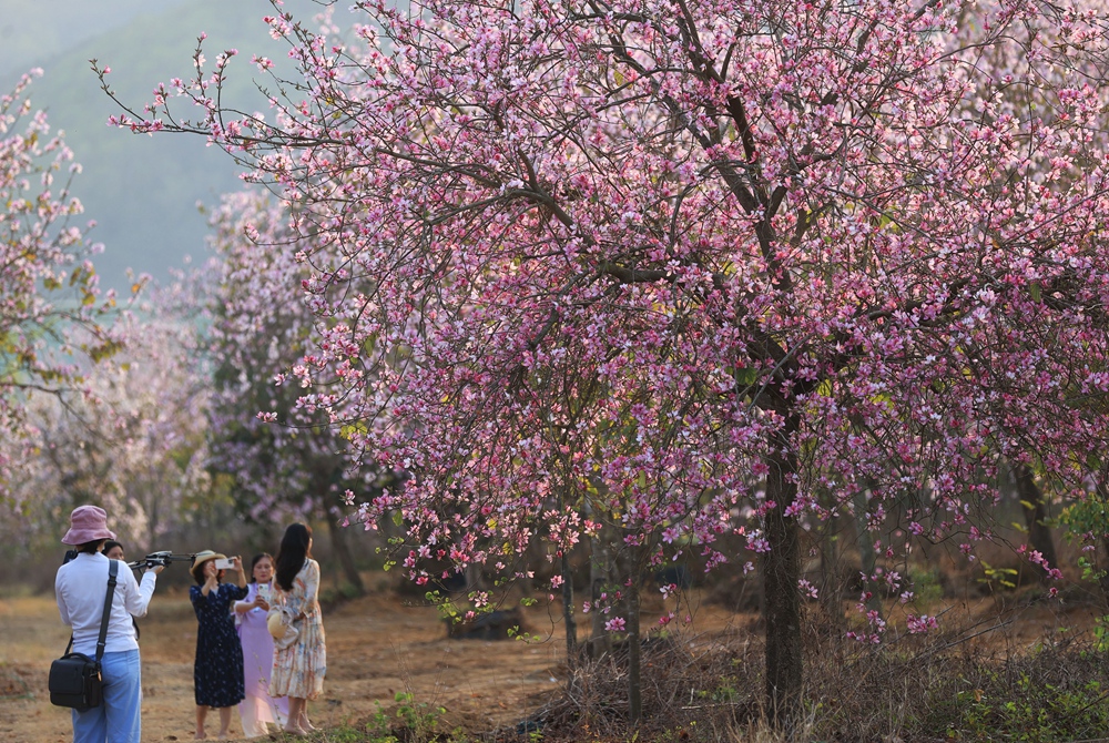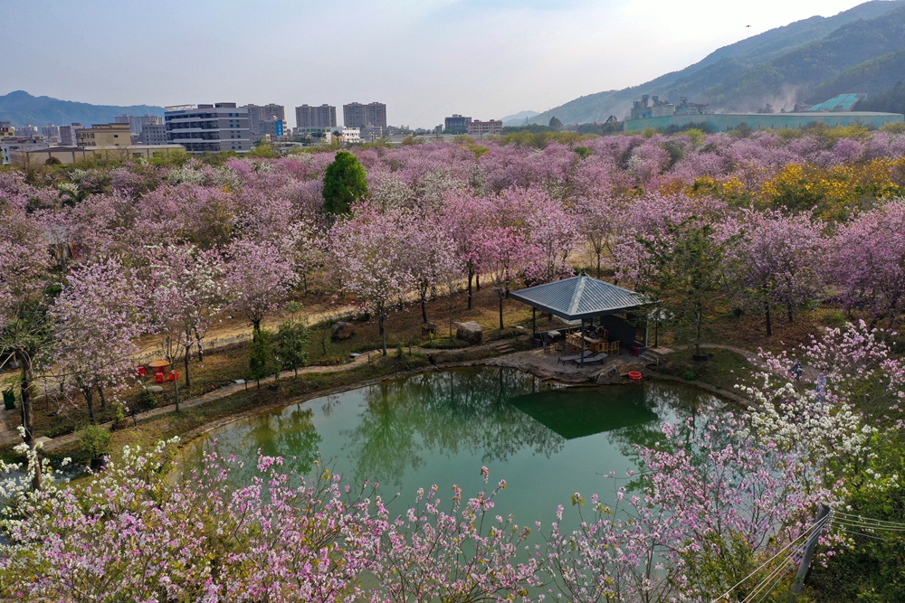近日,博羅縣泰美鎮(zhèn)棕意園林第五基地的300畝宮粉紫荊進(jìn)入盛花期。慕名而來(lái)的游客絡(luò)繹不絕,暢游在花海之間,陶醉在花香之中,或拍照留念,或漫步小徑、花間愜意悠閑,花香飄逸,沁人心脾。