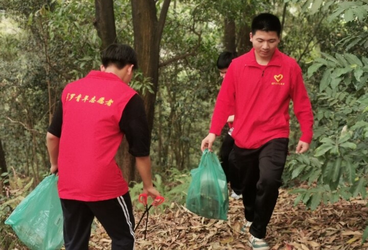 青年志愿者在撿拾垃圾。