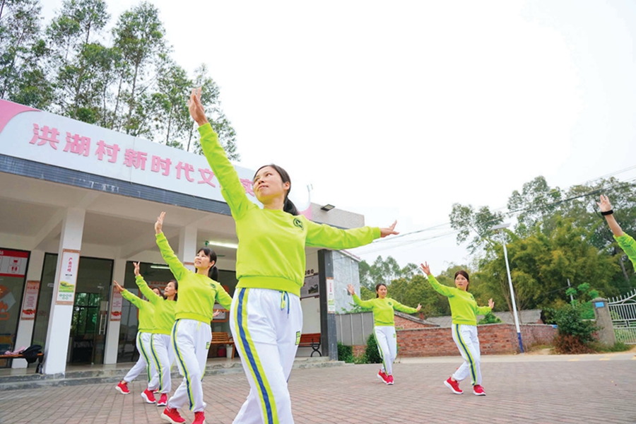 麻陂鎮(zhèn)洪湖村村民在排練節(jié)目。惠州日?qǐng)?bào)記者楊建業(yè) 攝