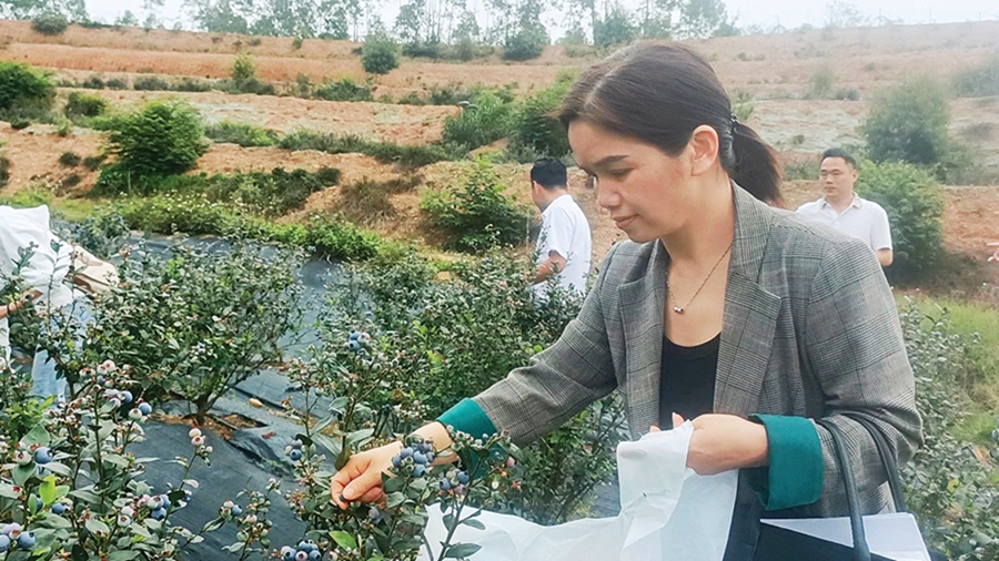 2022年,該莊園的首批藍(lán)莓掛果上市。在銷(xiāo)售鮮果的同時(shí),莊園還接待了上千名從社交媒體上慕名而來(lái)的游客。“隨著文旅行業(yè)的復(fù)蘇,今年預(yù)計(jì)會(huì)有更多游客前來(lái)采摘和游玩。”郭清森說(shuō),除了入園采摘外,該莊園還在持續(xù)布局深加工產(chǎn)業(yè),提高藍(lán)莓的附加值,目前已經(jīng)研發(fā)了藍(lán)莓紅酒等產(chǎn)品。