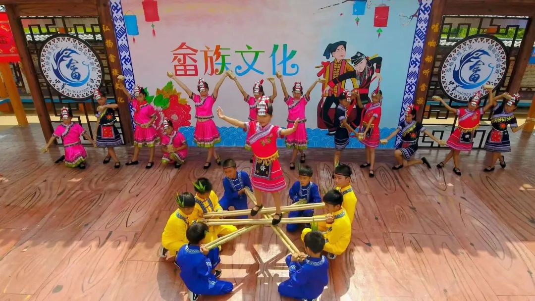 嶂背畬族村創(chuàng)作了畬族歌曲《敬酒歌》《感謝共產(chǎn)黨》《畬寨傳喜訊》,編排了畬族舞蹈《竹竿舞》《畬族阿妹喜唱歌》《山窩窩飄來畬娃的歌》。嶂背畬族小學(xué)將畬歌畬舞納入第二課堂,組織了學(xué)生合唱隊(duì)、舞蹈隊(duì),這不僅極大豐富了學(xué)生的第二課堂活動,而且有利于更好地開展畬族傳統(tǒng)文化的挖掘、傳承和保護(hù)。