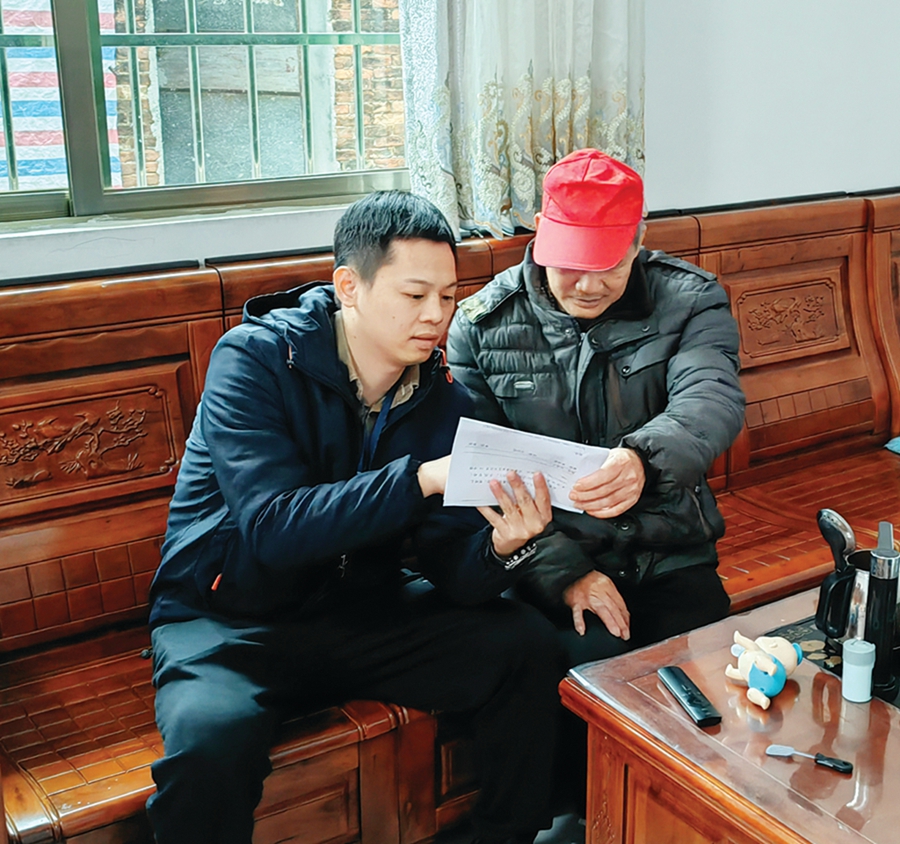 蝦塱村的警情90%以上為矛盾糾紛,每次村民有糾紛,張宇帆總是第一時(shí)間趕往現(xiàn)場(chǎng),讓“矛盾不出村”。對(duì)于村民之間的矛盾糾紛,張宇帆的解決門道就是以情理相融的方法,找出癥結(jié)所在,對(duì)癥下藥。去年10月,村民聶某與其叔叔發(fā)生口角被打傷。張宇帆與村干部通過(guò)走訪了解到雙方矛盾根源是家中宅基地分配問(wèn)題。為化解雙方積怨,張宇帆協(xié)調(diào)各方,一方面公平公正地處理打人事件,明確責(zé)任、協(xié)商賠償;另一方面找來(lái)村干部、駐村司法顧問(wèn)、宗族長(zhǎng)輩等,對(duì)兩家一直爭(zhēng)執(zhí)的宅基地分配問(wèn)題進(jìn)行分析調(diào)解。最終,雙方簽訂了和解協(xié)議書(shū)。