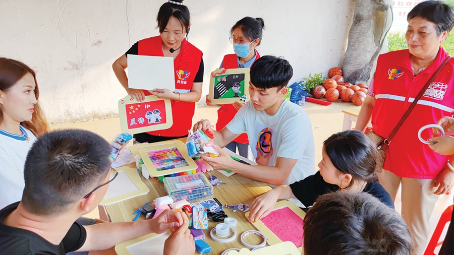 徐杰和球迷、志愿者一起制作反詐剪紙作品。 惠州日?qǐng)?bào)記者盧泓宇 攝