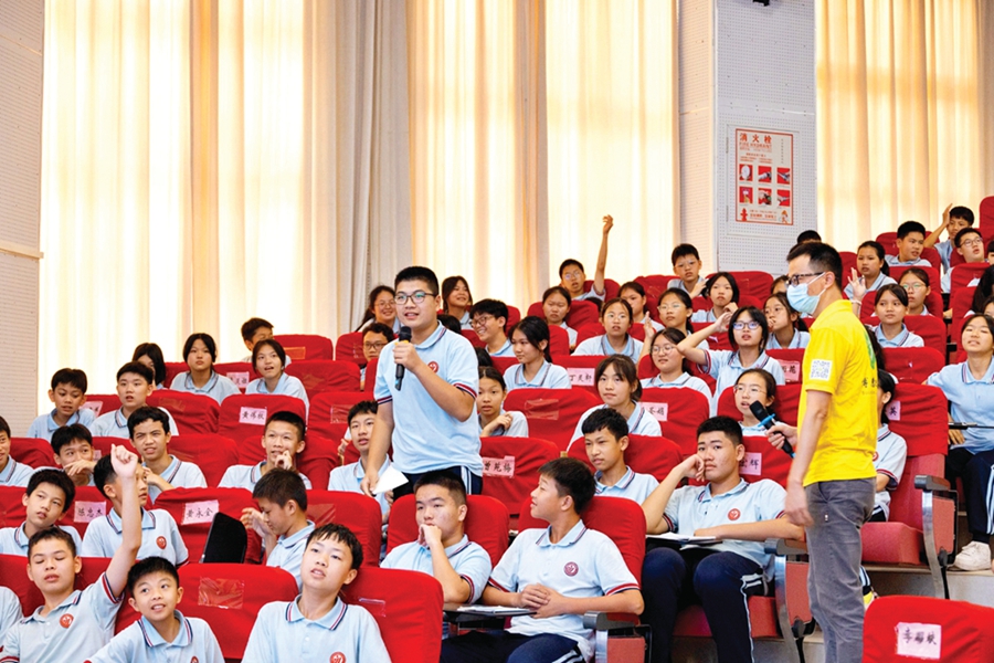 在博羅中學佳兆業(yè)學校的法治安全課上,博羅法院干警與學生互動。